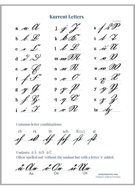 One of the most notable features of Kurrent is its use of ligatures. Ligatures are two or more letters that are combined into one symbol. For example, the letters s and z are combined to form the symbol ß.